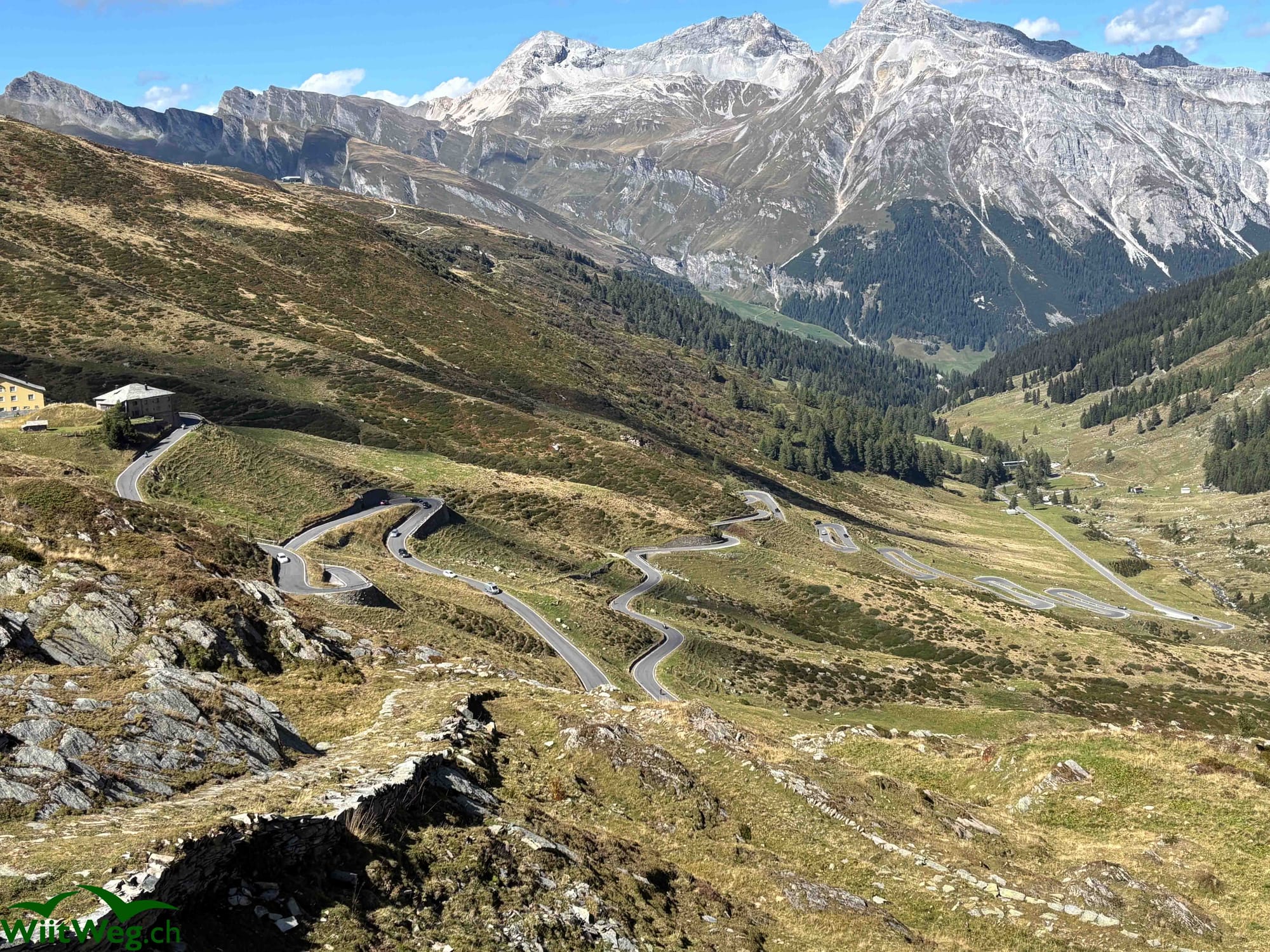 Eindrückliche Serpentinen am Splügenpass und schon in Italien am Comosee.