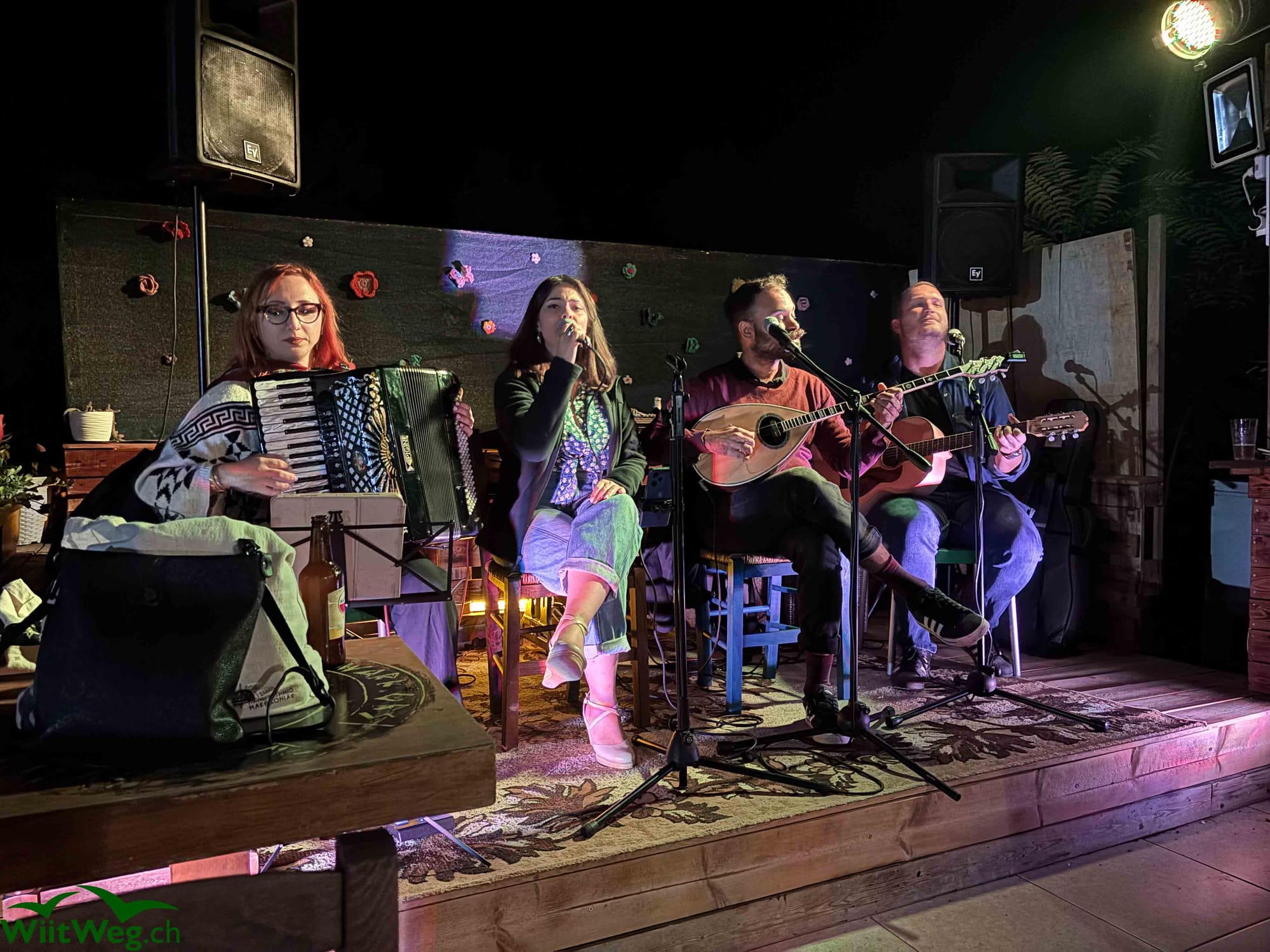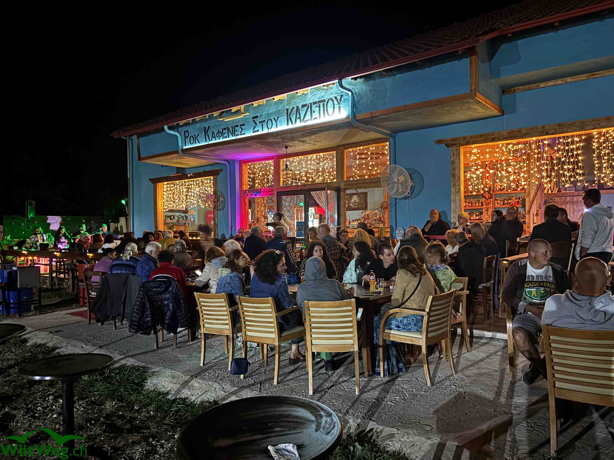 Grenzübertritt nach Griechenland und am Kerkinisee mit Pferden vorbei zu einem Kloster und dann nach Amphipolis. Dort haben wir einen Stellplatz für Wohnmobile bei einem Restaurant ausserhalb der Siedlung gefunden. Am Abend dann die grosse Überaschung: Eine Liveband spielt griechische Musik und das Lokal und der zugehörige Parkplatz füllt sich. Ein gelungener Abend mit Feinem vom Grill.