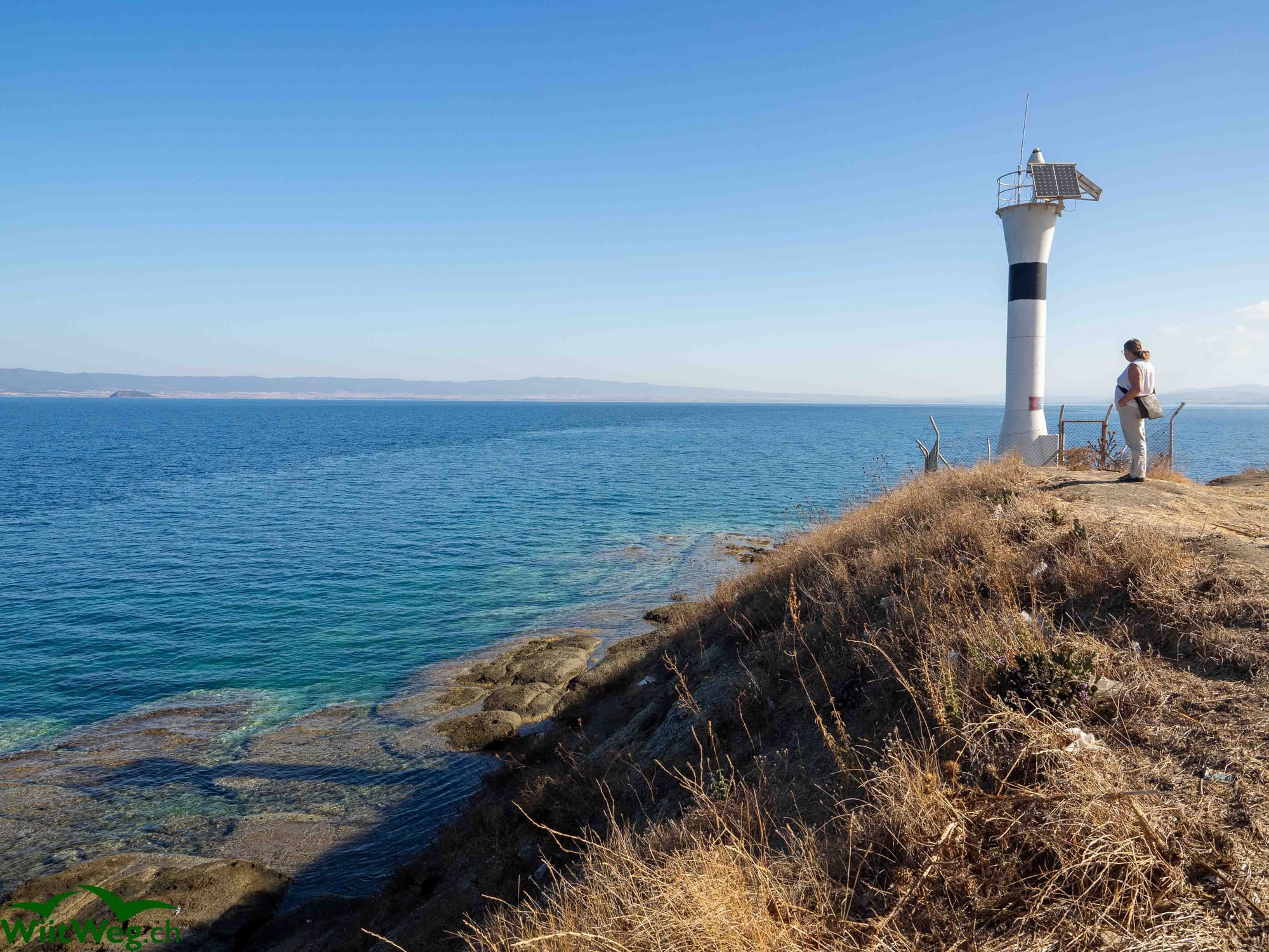 Vom Campingplatz entlang der Küste zu einem Kloster auf einer Insel.