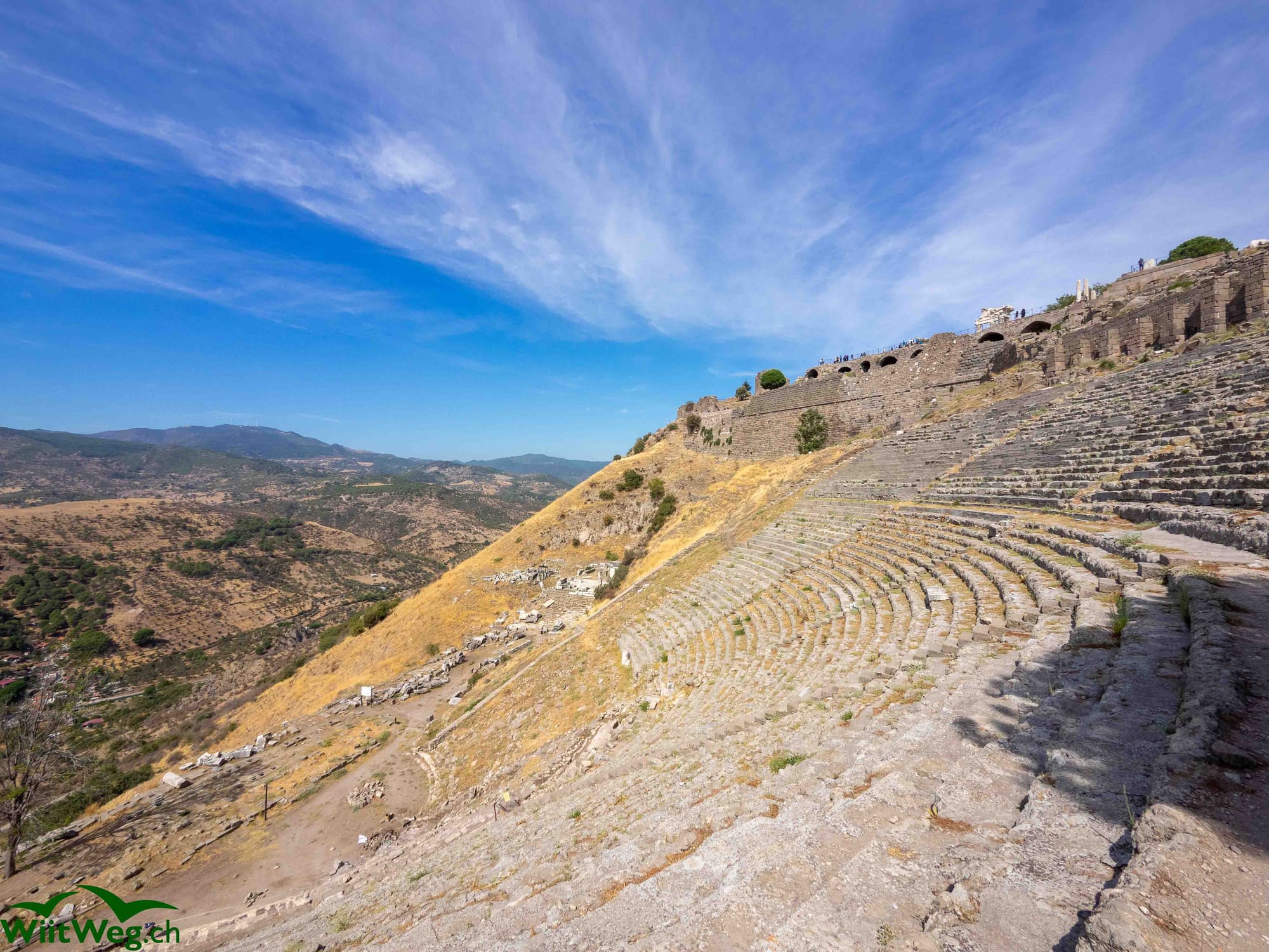 Weiter zur antiken Stadt Pergamon in Bergama. Mit der Seilbahn hoch und dann eine Wanderung durch die Ausgrabungen oben mit vielen (anderen) Touristen. Die Wanderung hinunter zum Calle war dann ebenso interessant, weil die antike Stadt den ganzen Berghang einnimmt. In diesem weitläufigen Teil waren wir alleine und hatten sehr viele Steine 🪨🪨🪨 ganz für uns.