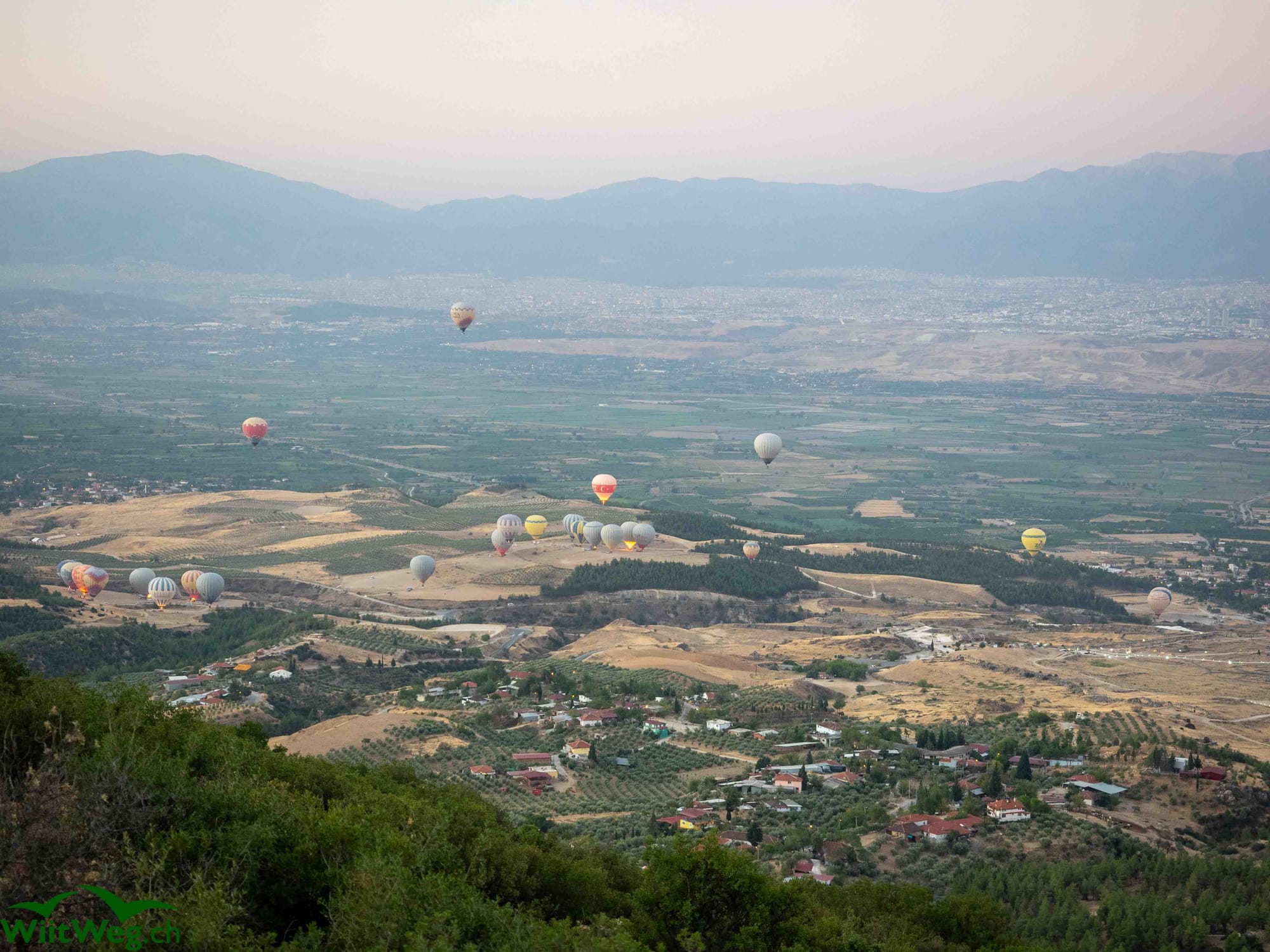In Pamukkale sind wir in der Höhe zu einem Campinglatz gefahren. Super Weitsicht, Pool und leckere Köfte, was will man mehr! Hier bleiben wir und geniessen am Morgen in der Früh kurz vor Sonnenaufgang den Aufstieg von geschätzt 30 Heissluftballons und in der Nähe starteten auch noch Gleitfallschirme.