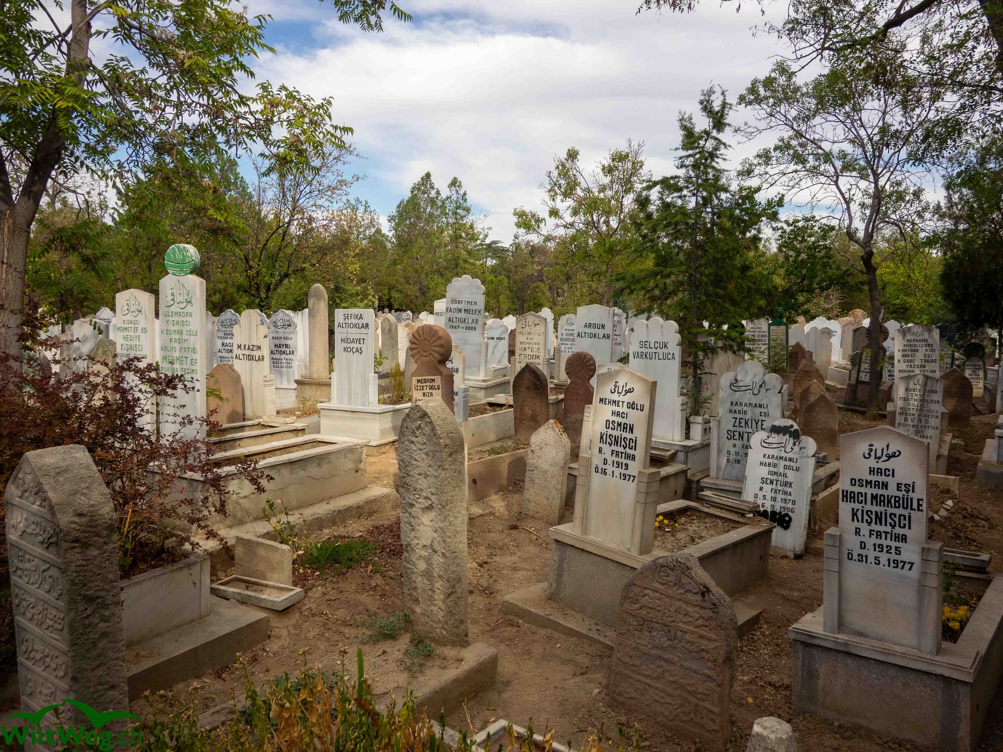 Das nächste Ziel war nun eine grössere Stadt: Konya bekannt durch seine Derbische. Die Stadt hat uns sehr gut gefallen und wir haben viel Interessantes gesehen. Wir schlenderten durch die hübsche Altstadt der Stadt mit über 3 Mio Einwohnern. Auf dem Weg lag auch ein grosser Friedhof wie unzählige Moscheen, Marktstände und ein Museum.