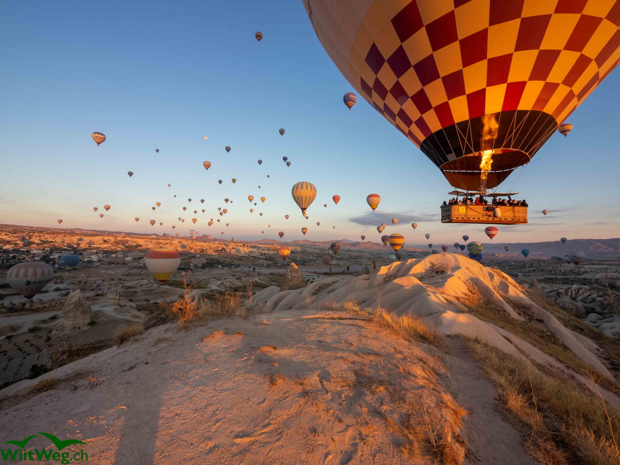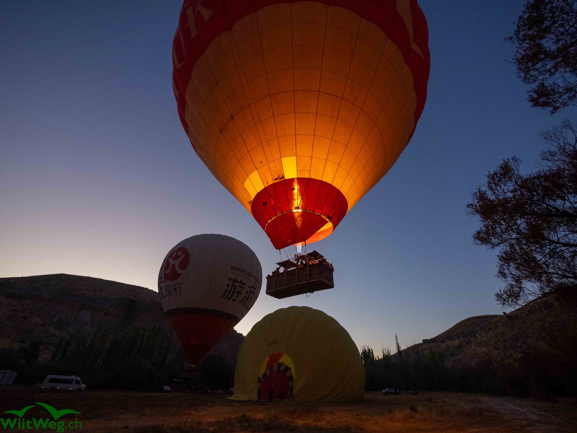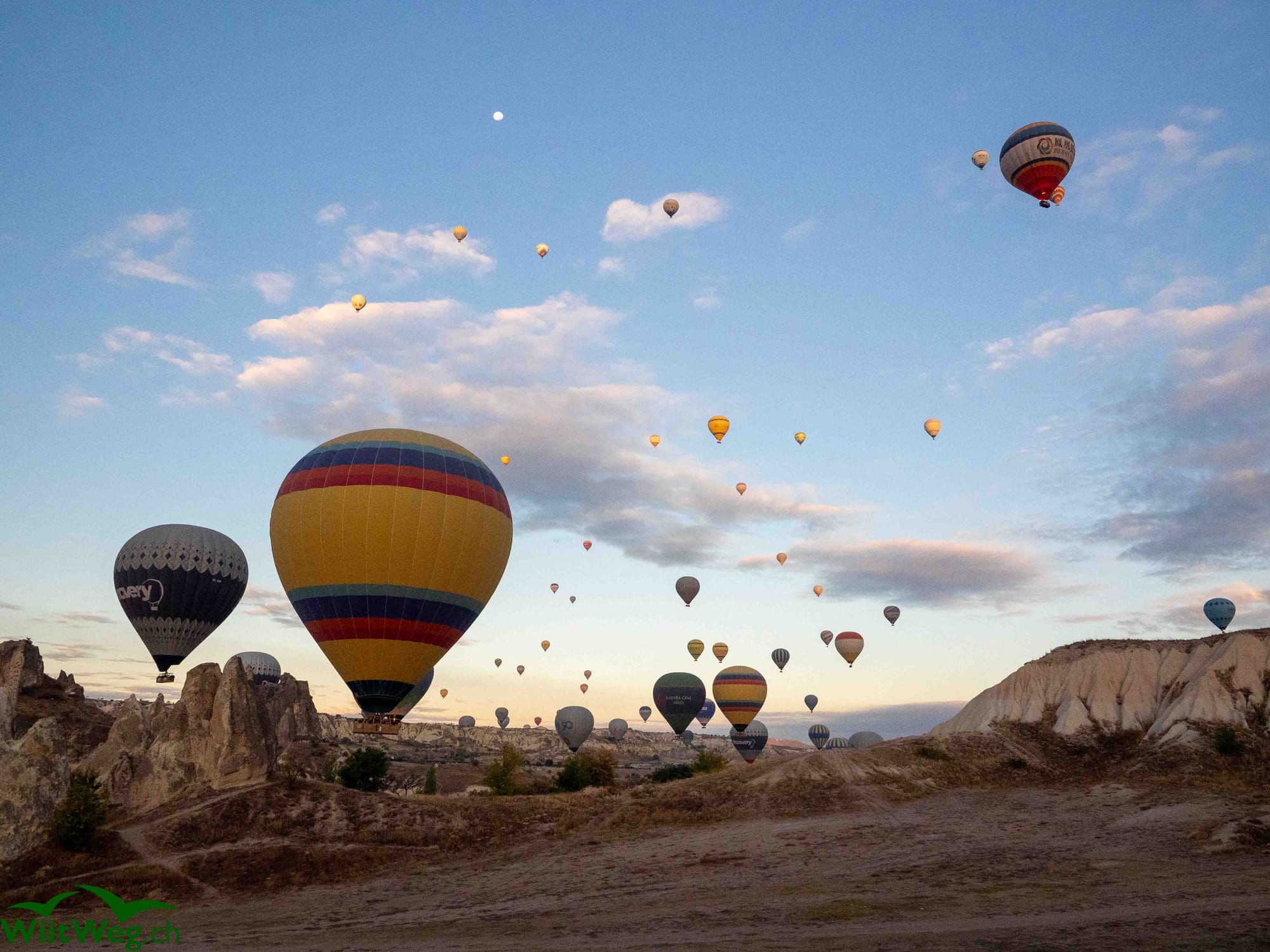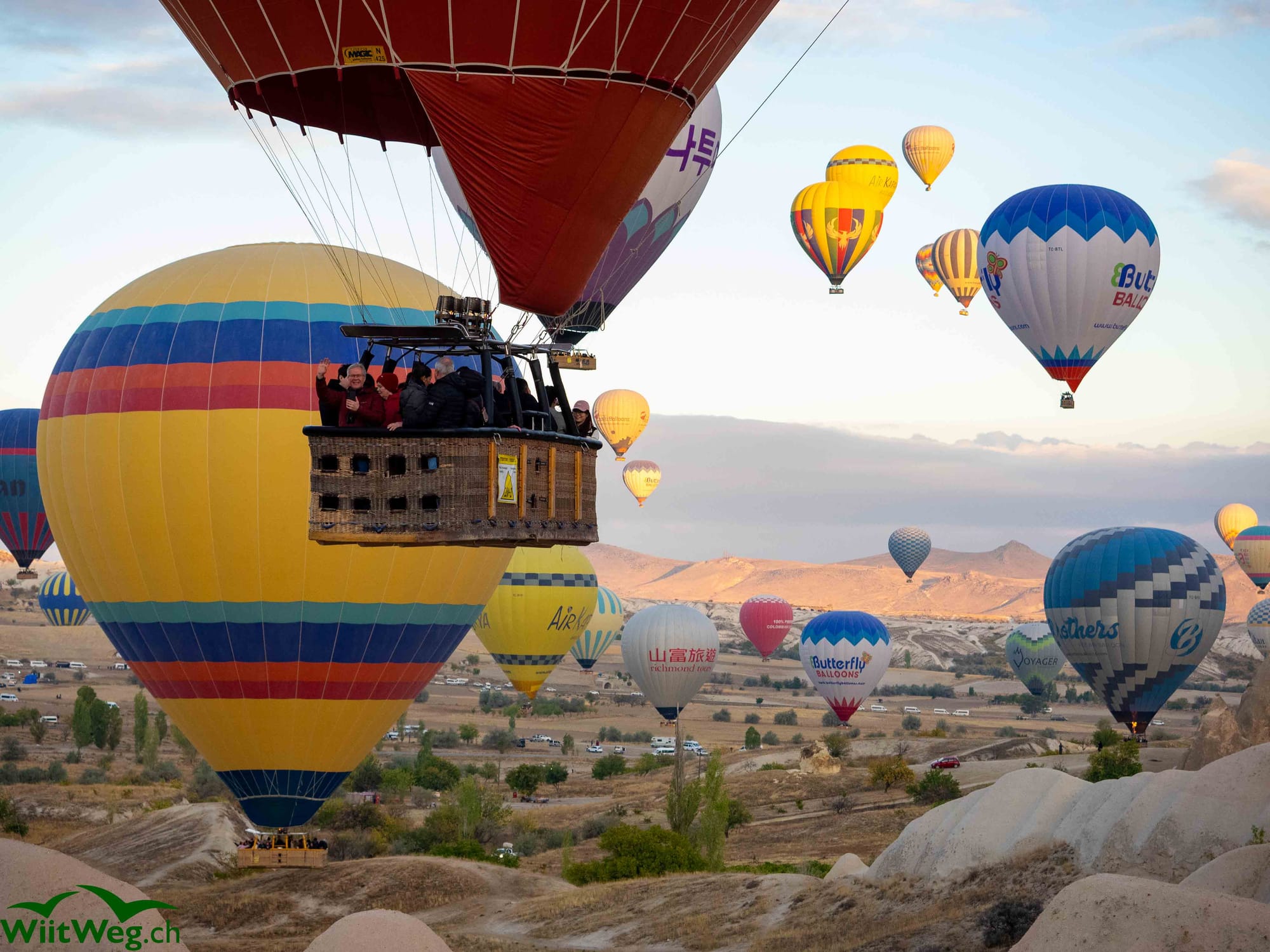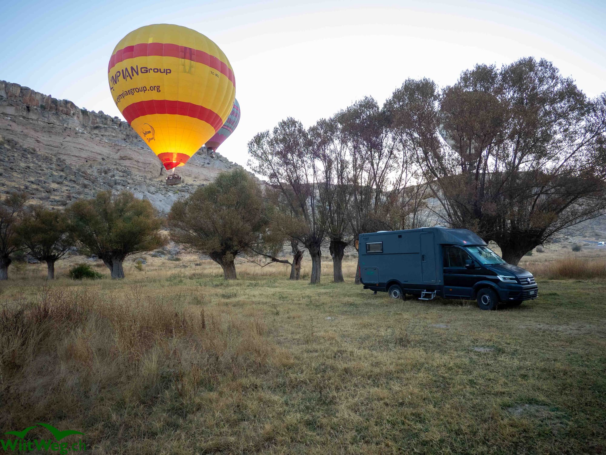 Wir übernachten im Ihlara-Tal und werden am Morgen von Heissluftballons geweckt.