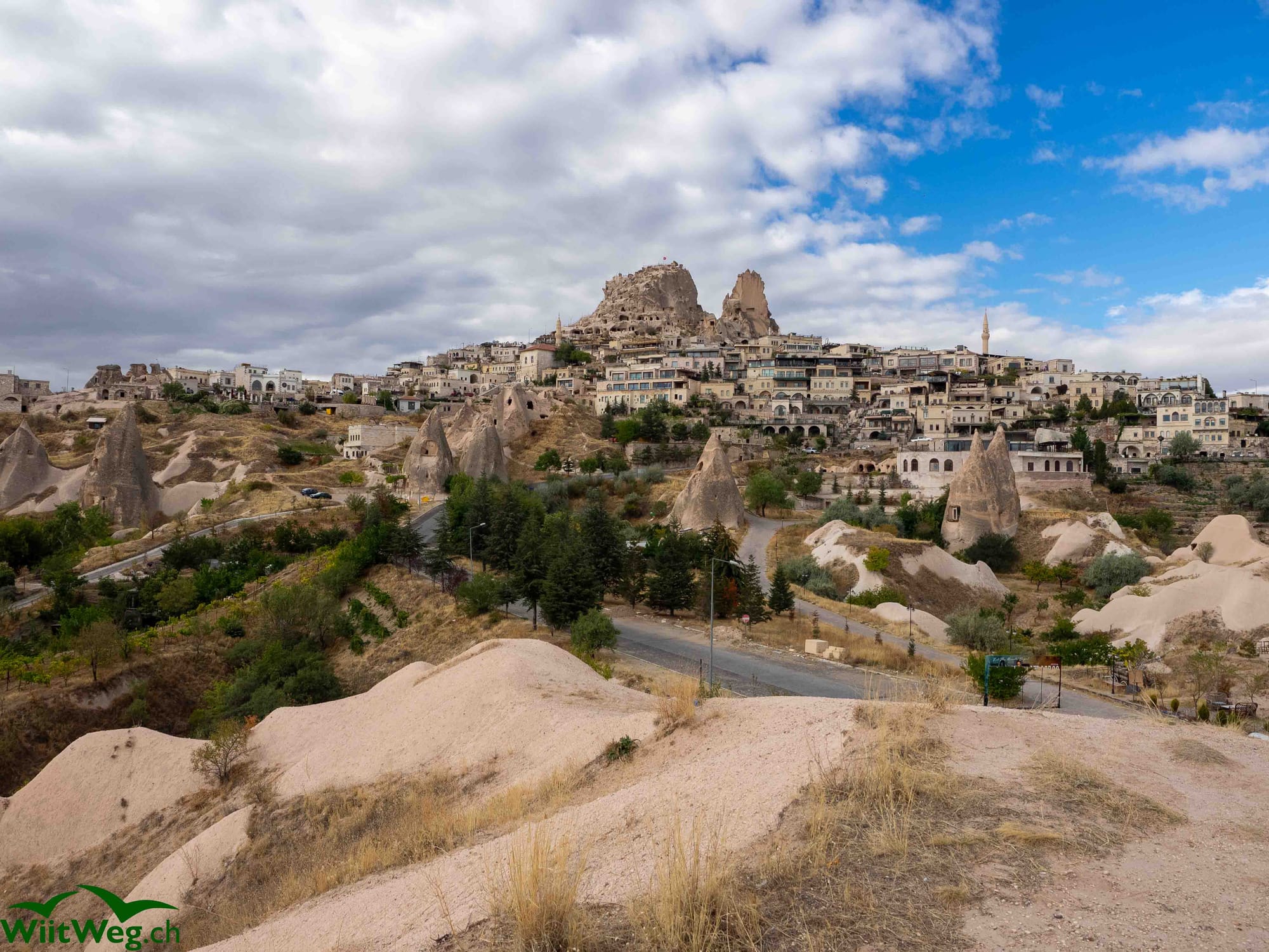Die Stadt Uchisar wird durch einen grossen Berg dominiert, der ausgehöhlt als Burg diente und von uns besichtigt wurde. Von hoch oben hat man einen faszinierenden Weitblick hinunter auf die Ortschaft und die Umgebung.