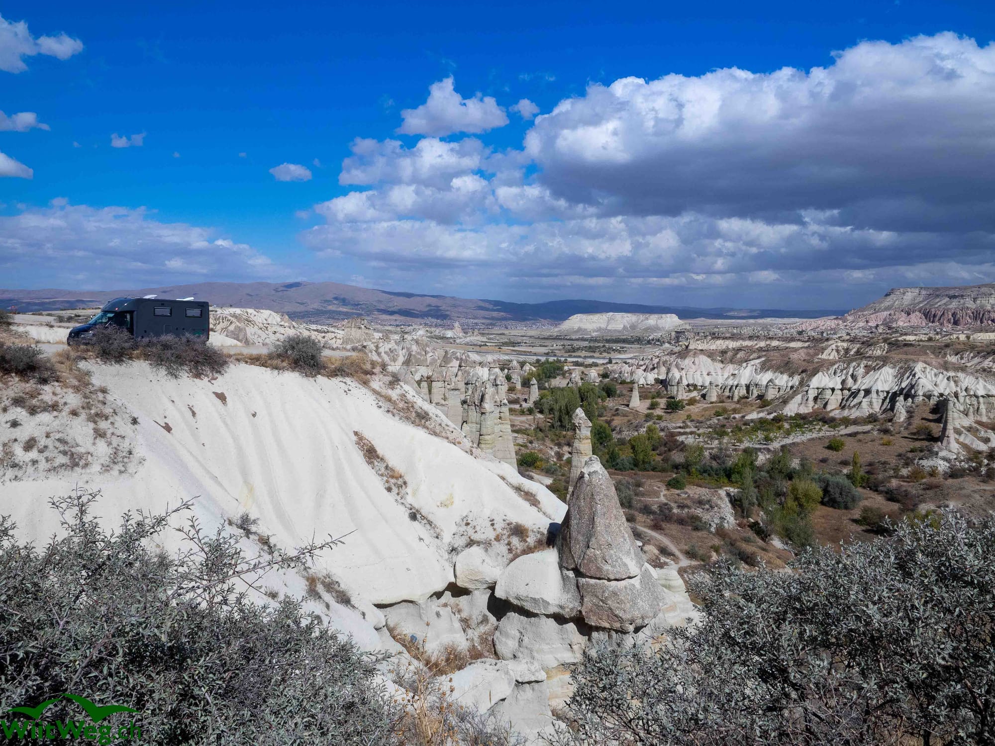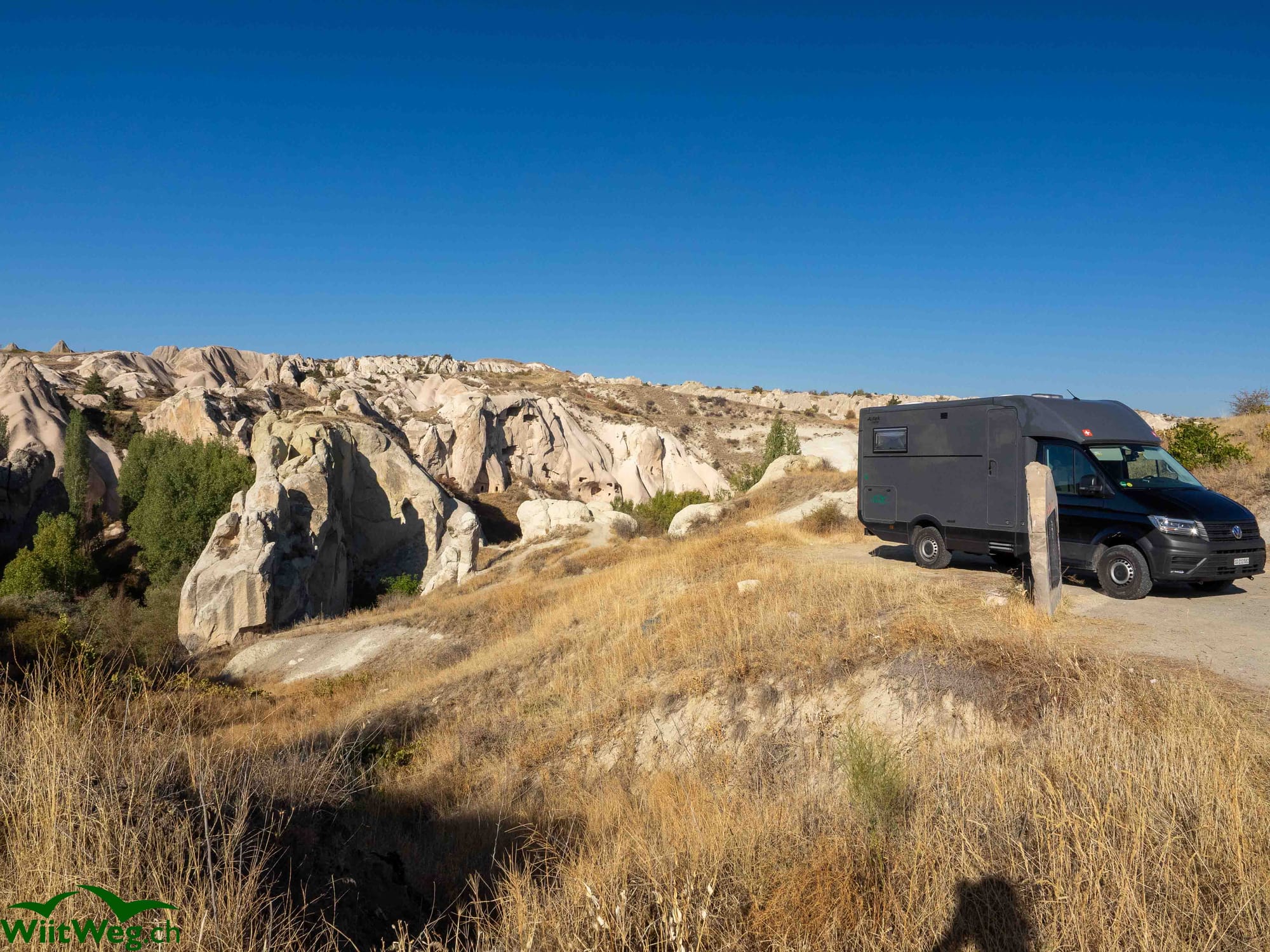 Wir wechseln unseren Stellplatz an den Rand des Love Valleys mit Blick auf ganz spezielle, namensgebende Felsenformationen.