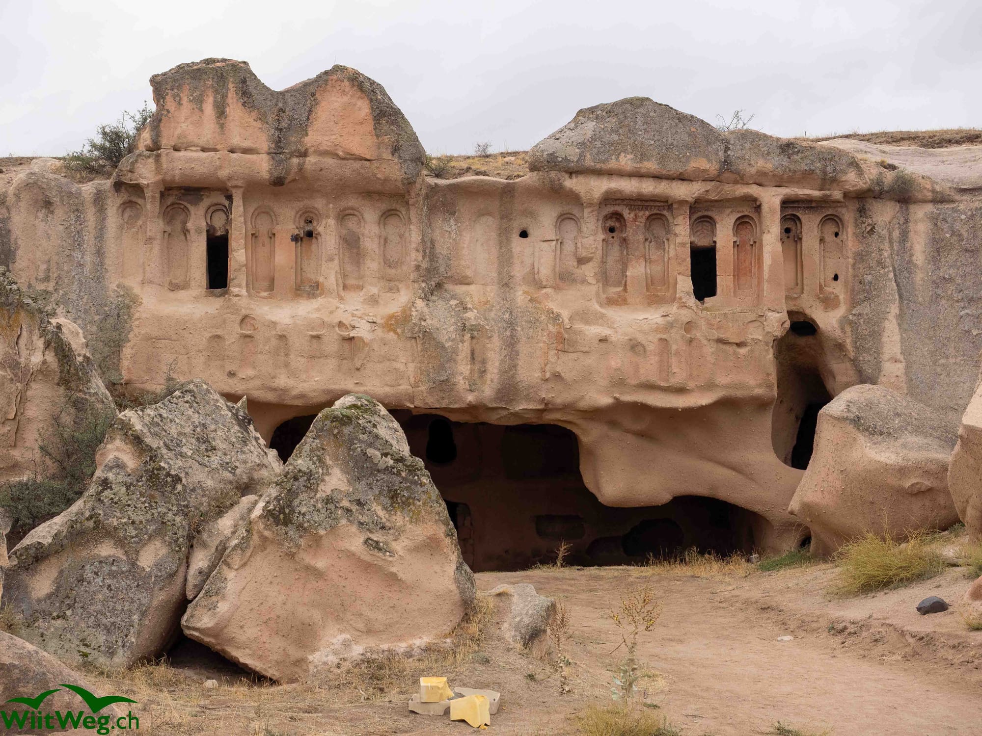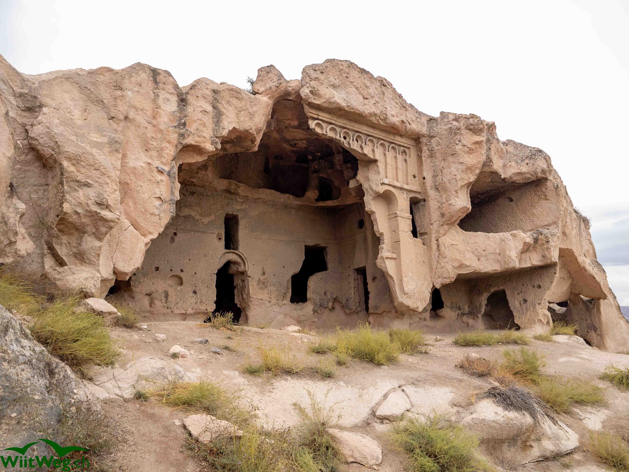 In Gülşehir besichtigen wir Açık Saray, eine archeologische Städte mit sehr eindrücklichen aus dem Felsen gehauenen Kirschen und Wohngebäuden.