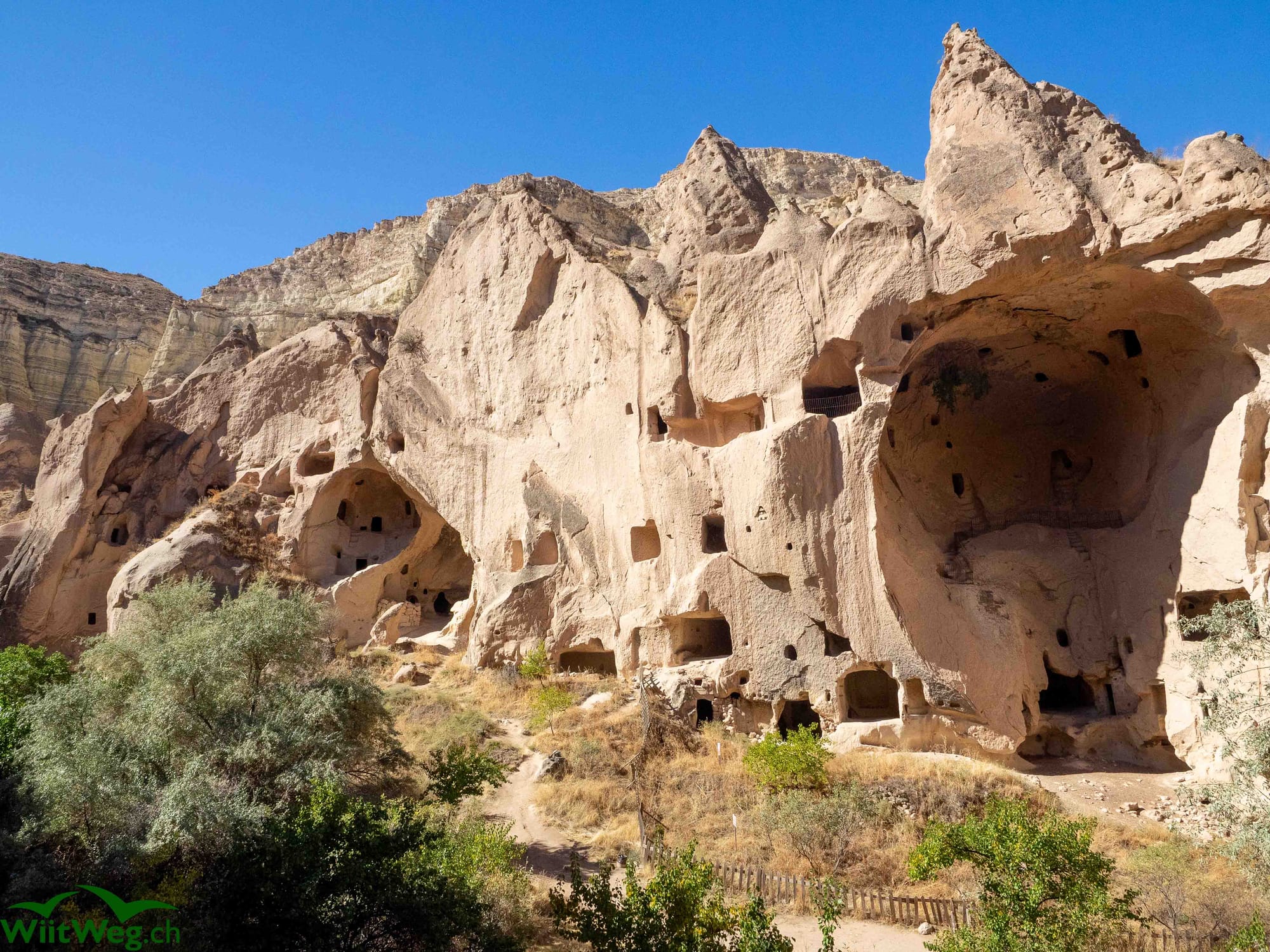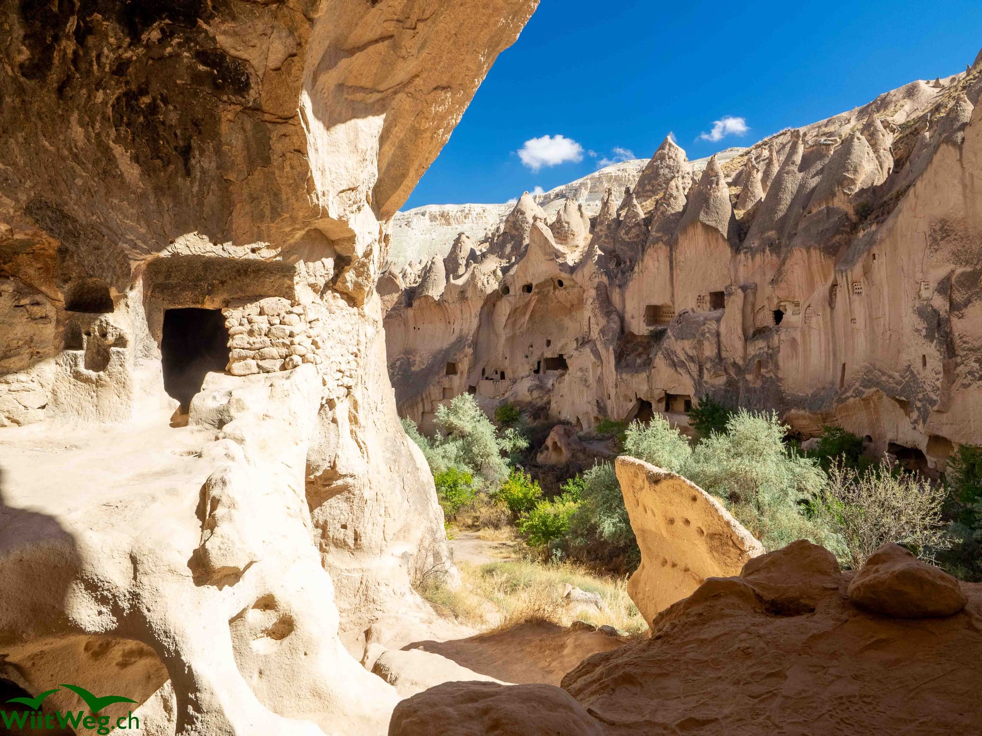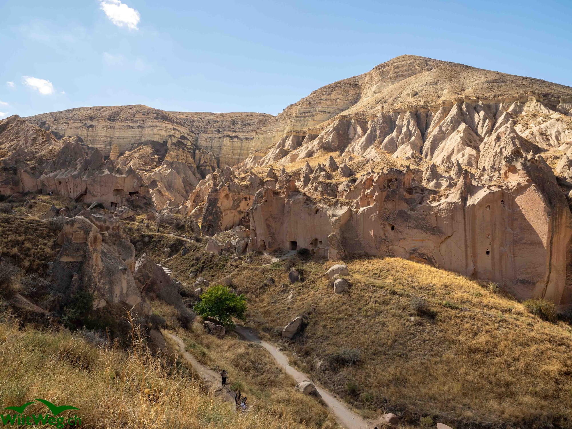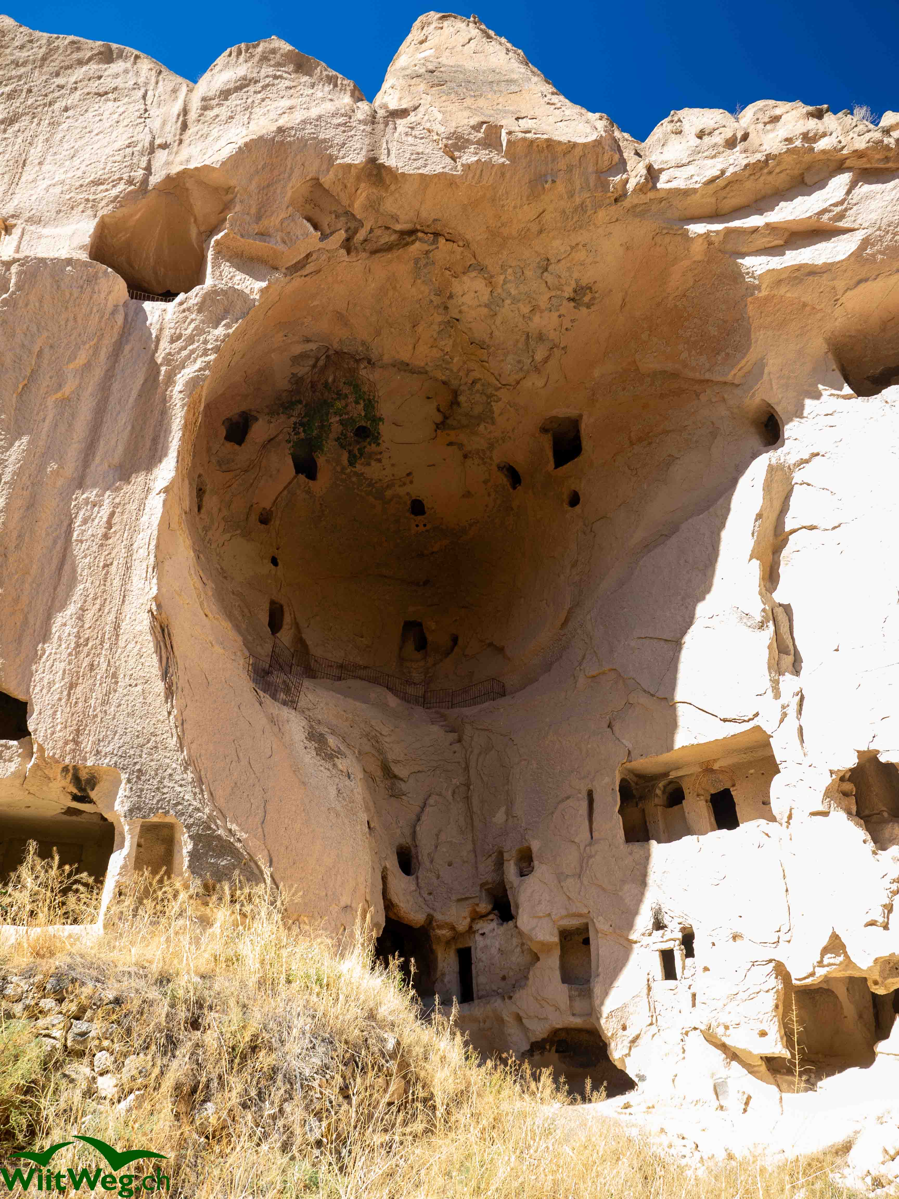Selime im Ihlara Thal mit der in den Felsen gehauenen Kirsche.